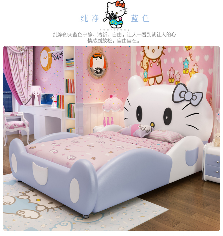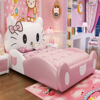 Children's bed, girl's princess bed, solid wood, 1.5 meters single bed, children's room combination furniture, 1.2 meters Nordic creative girl pink cartoon cat bed sheet bed, 2 bedside tables, regular bed, 1.2 * 1.9 [Image price, brand quotation]-