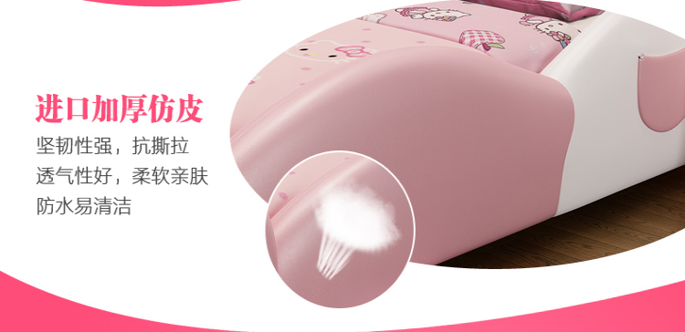 Children's bed, girl's princess bed, solid wood, 1.5 meters single bed, children's room combination furniture, 1.2 meters Nordic creative girl pink cartoon cat bed sheet bed, 2 bedside tables, regular bed, 1.2 * 1.9