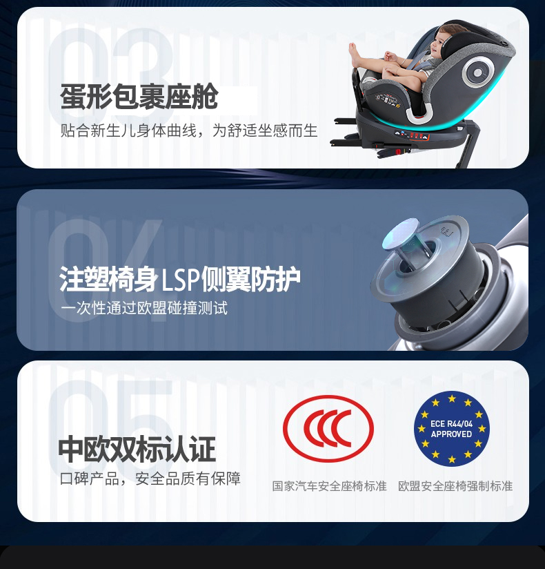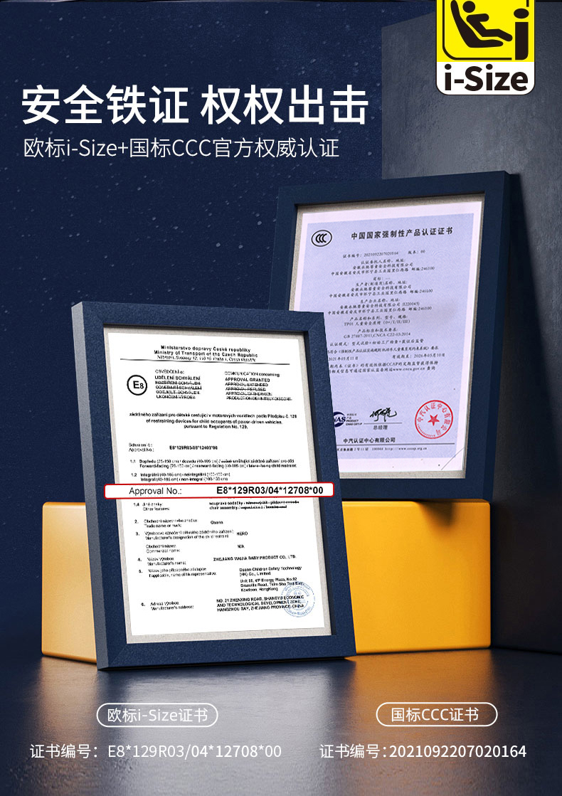 | Testing standard: 3C, EU ECE, i-Size certification | Testing standard: 3C, EU ECE, i-Size certification |